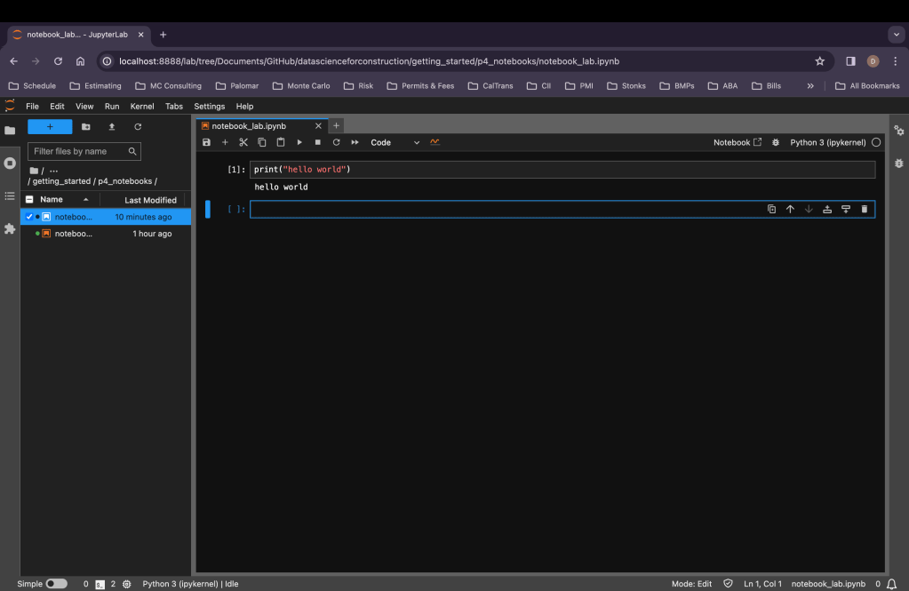 The same process can be used in Jupyter Notebooks with a more streamlines interface if you don’t like all the features and find Jupyter Lab cluttered. In a command prompt or terminal execute the following command.